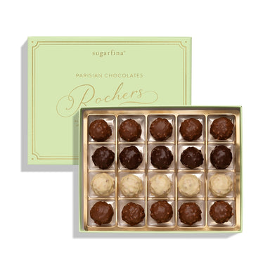 Experience a taste of Paris with Hazelnut Praliné, Salted Caramel, and Dark Chocolate French-made chocolates filled with decadent ganache centers.