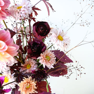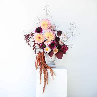 View full detailsHere we have a dramatic yet refined arrangement that weaves together the richness of burgundy and maroon with the softness of blush blooms for stri...