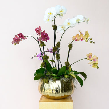 This color filled arrangement will thrive best placed in a bright sun filled room. Allow the top 1-2” soil to dry in between waterings and be sure ...