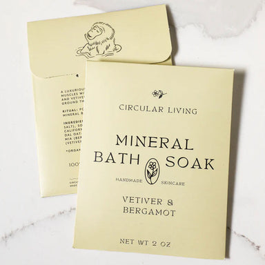 A set of 3 luxurious mineral soak sachets for relaxing sore muscles. Vetiver + Bergamot: colloidal oats, bergamot and vetiver to nourish the skin a...