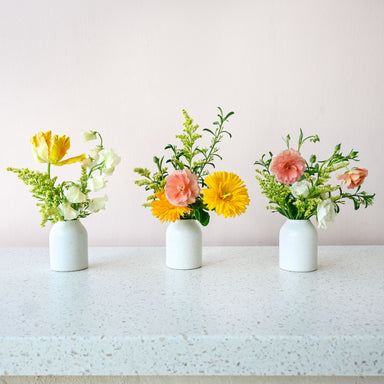 This three-bundle of bud vases is perfect for a tablescape with lush, seasonal stems in a neutral vase. To speak with a flower specialist to reserv...