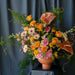 Solar Synthesis is a study in sheer botanical volume. By combining the wide, architectural collector plates of anthurium with a high-density cluster of sun-drenched roses and gerberas, the arrangement mimics a self-sustaining solar event. We’ve observed a radical outward expansion of trailing vines and wispy greenery, suggesting that the thermal core of this piece is so powerful it is actively pushing the boundaries of its terracotta vessel.